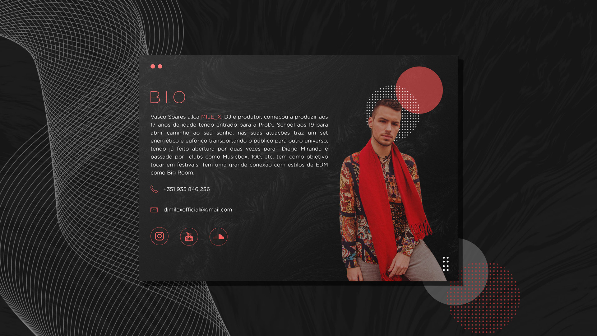 This project showcases the design of a captivating Press Kit for Vasco Soares, a talented Portuguese DJ and producer known as MILE_X. Fueled by his passion for electronic dance music (EDM) and known for his versatility, MILE_X delivers energetic and euphoric performances that captivate audiences. Having opened for Diego Miranda twice, MILE_X is steadily carving out his niche in the music industry.